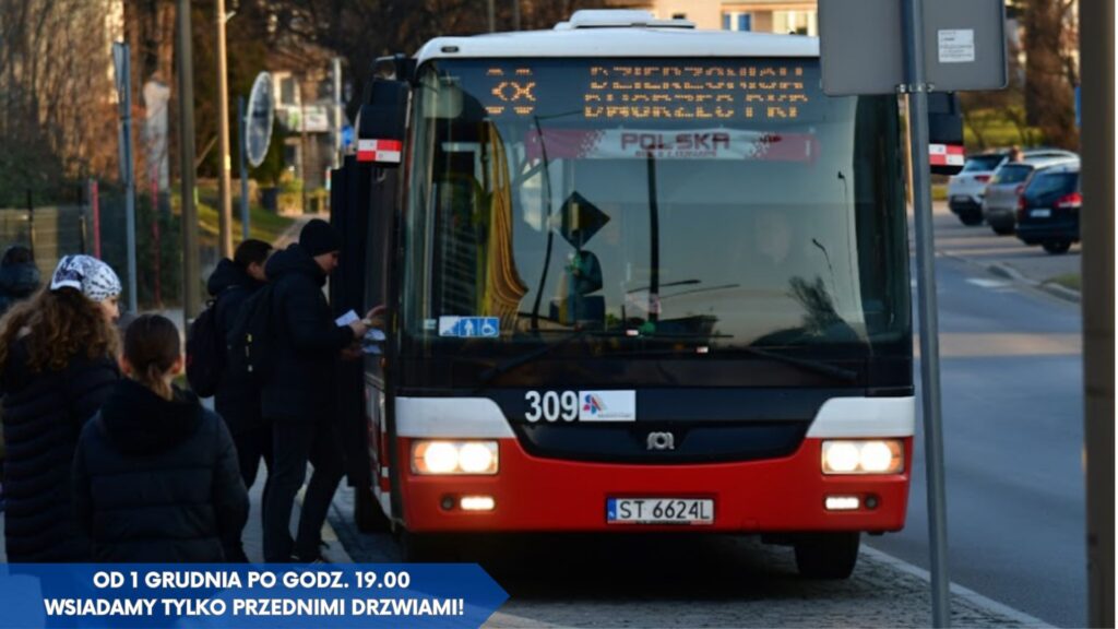 Od 1 grudnia po godzinie 19.00 pasażerowie będą wsiadać wyłącznie przednimi drzwiami. Przy wejściu należy okazać kierowcy ważny bilet lub dokument uprawniający do bezpłatnego przejazdu.